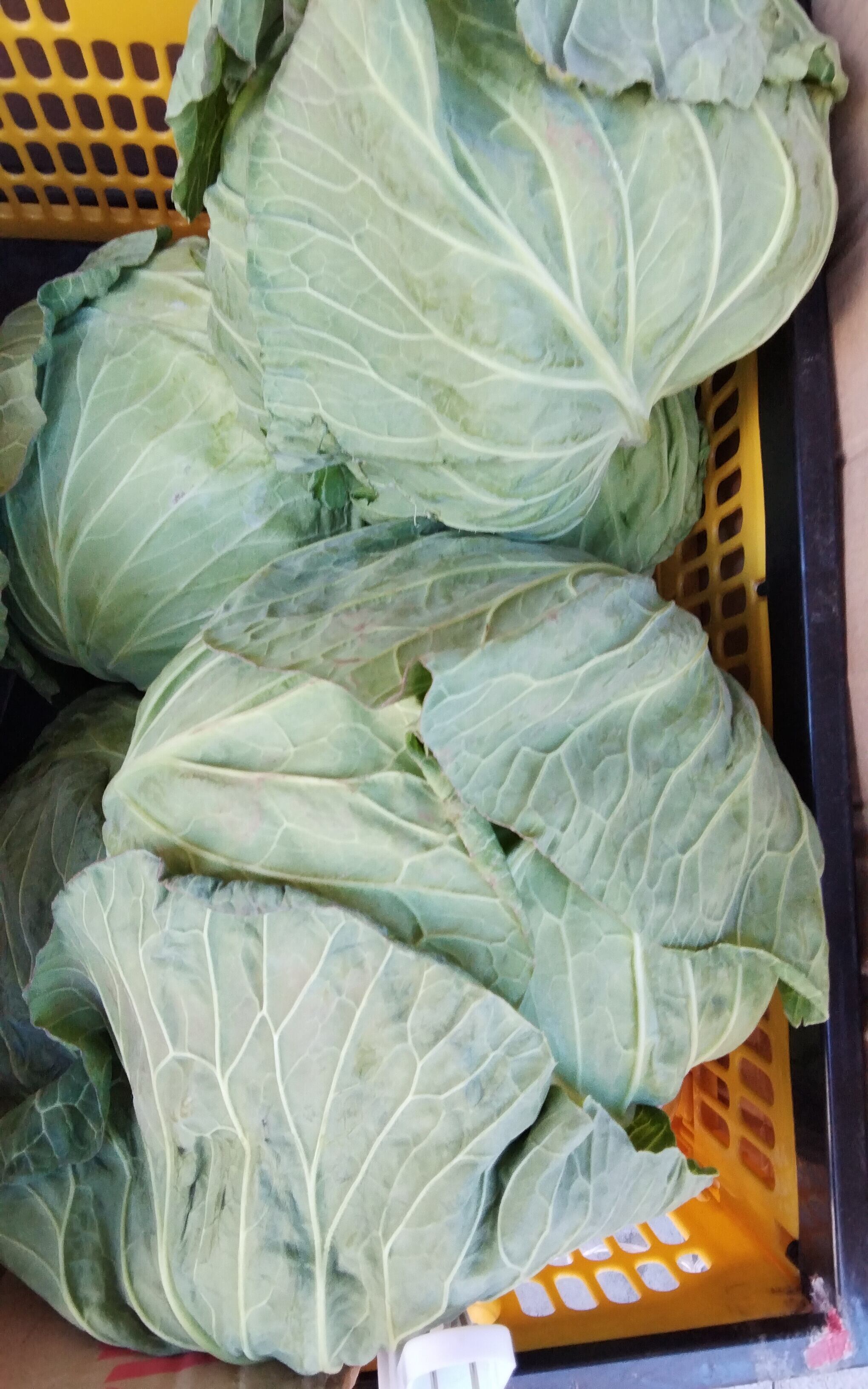 菜園の協力農家さんのキャベツです。基本はLです。ご要望により~2L~3L~以上等々。 使い道はいろいろ!で❪例 Lサイズ8個単位で箱入り有料❫外葉を多く付けての希望も! 軒先ではバラ売りです。